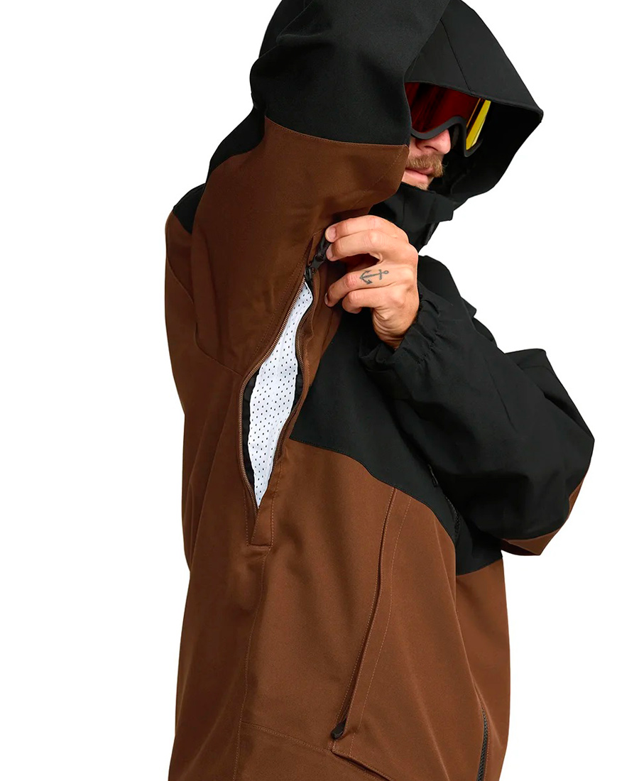 • Faldón antinieve con elástico ajustable, que evita que la nieve y el viento entren en la chaqueta.