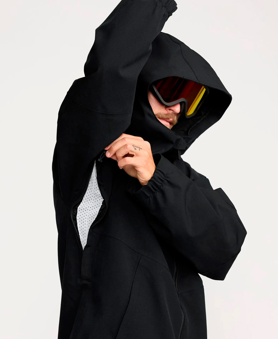 - Faldón antinieve con elástico ajustable, que evita que la nieve y el viento entren en la chaqueta.